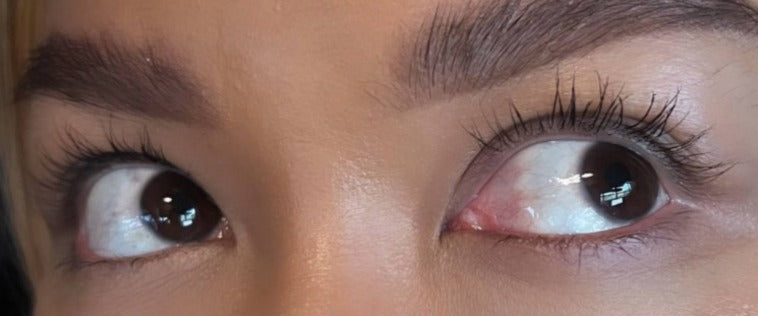 Links: natuurlijke wimpers. Rechts: wimpers na 60 dagen gebruik.